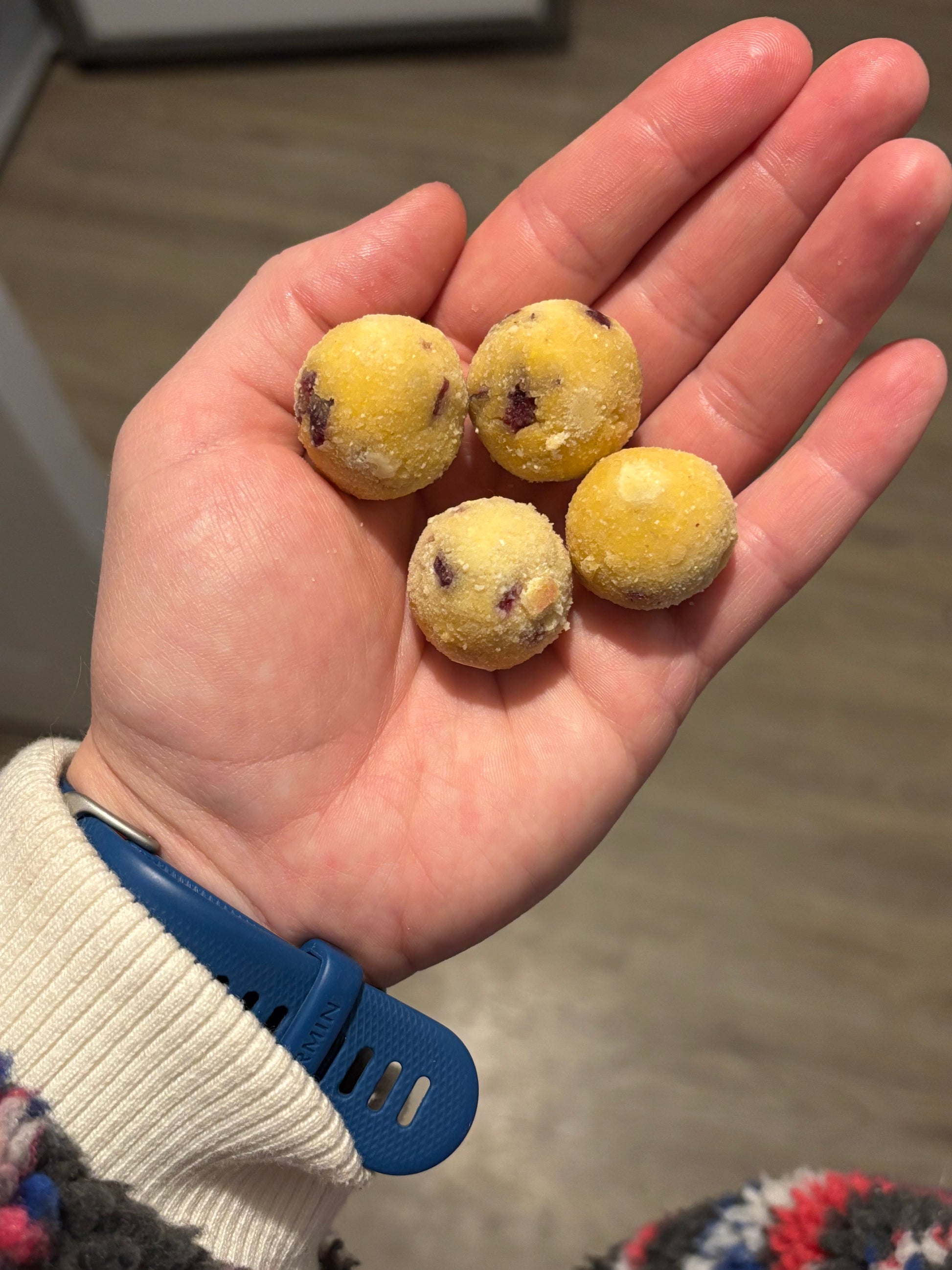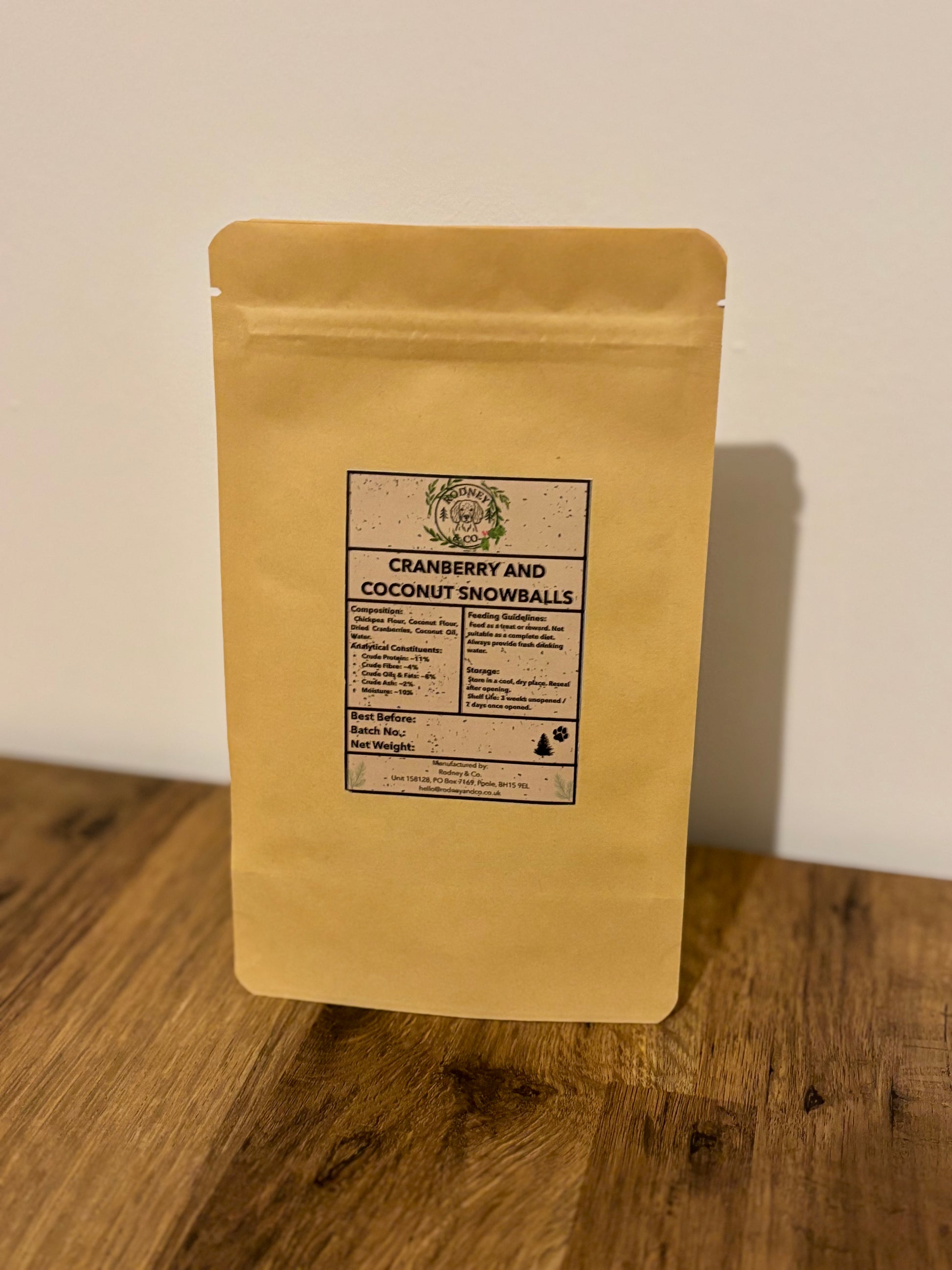 Cranberries are known for antioxidant and urinary health benefits, while coconut adds healthy fats for energy and a glossy coat. Softly festive and packed with goodness, each little Snowball is a delicious reminder that the best treats come from nature, not a factory.