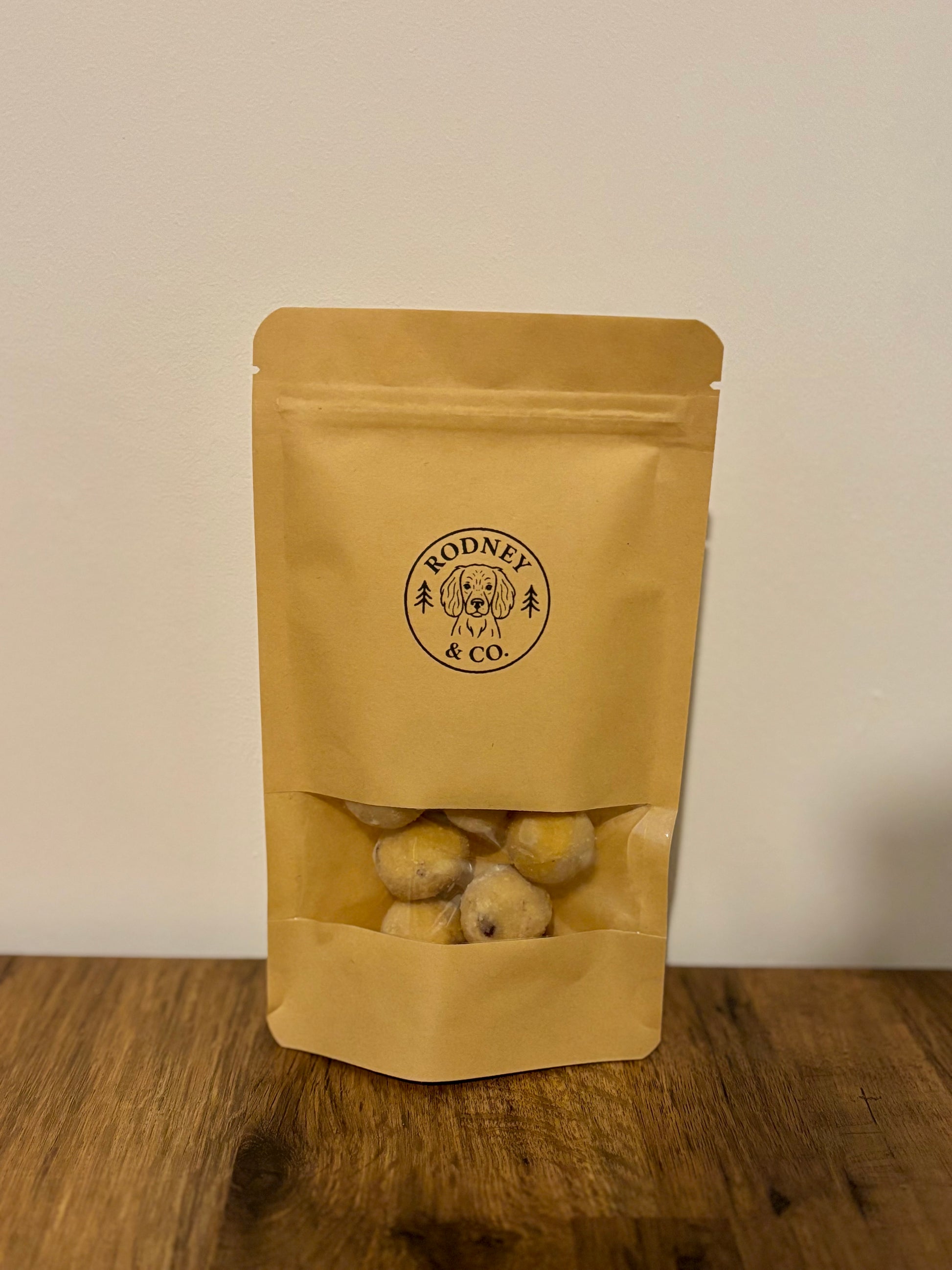 Our Cranberry & Coconut Snowballs are the perfect stocking-stuffer for festive pups. Handmade in small batches and rolled by hand, these bite-sized winter treats bring together naturally sweet cranberries, creamy coconut and gentle grain-free flours — nothing artificial, nothing unnecessary.