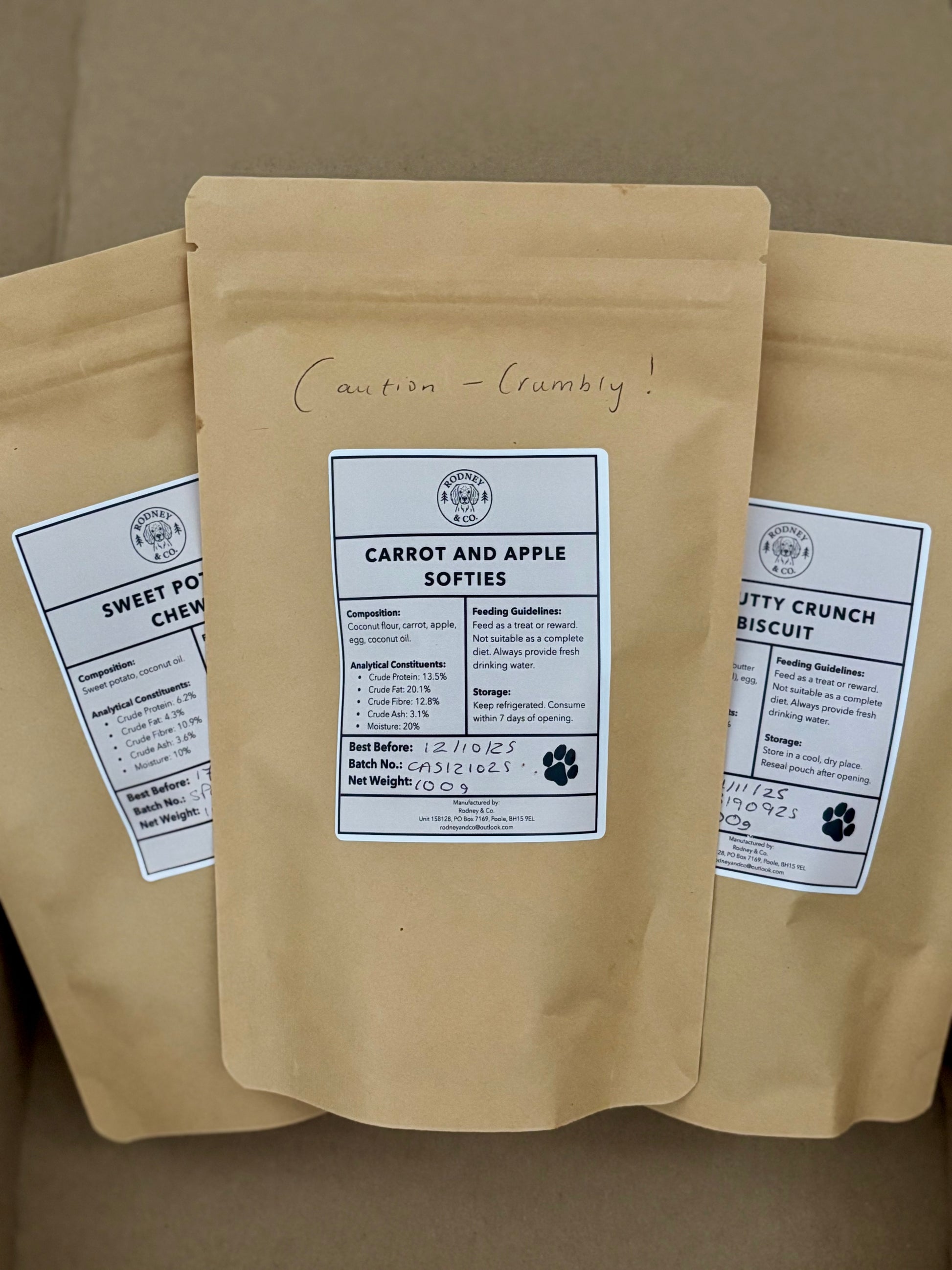 Free from artificial colours, flavours or preservatives, this bundle offers a variety of flavours and textures to keep tails wagging and taste buds happy. Whether you’re stocking up for adventures, training, or simply spoiling your best friend, the Rodney & Co. Treat Bundle makes it easy to share wholesome goodness, straight from our kitchen to your dog’s.